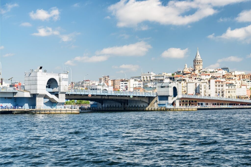 สะพานกาลาตาสองชั้นทอดข้ามโกลเด้นฮอร์น ซึ่งเป็นทางเข้าที่แบ่งฝั่งยุโรปเก่าและใหม่ของอิสตันบูล ชั้นล่างเต็มไปด้วยร้านอาหารทะเล ส่วนชั้นบนมักเต็มไปด้วยนักตกปลา