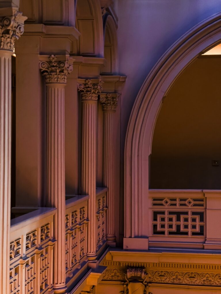 บันไดโค้งที่สร้างขึ้นในสไตล์อาร์ตนูโว เรียกว่า "บันไดคู่รัก" สำหรับทางแยกแล้วเชื่อมต่อใหม่ การออกแบบที่พลิ้วไหวนี้ทำให้ผู้หญิงใช้งานได้อย่างหรูหรา แต่ยังหมายความว่าเด็กๆ จะไม่ล้มลงไกลเกินไป