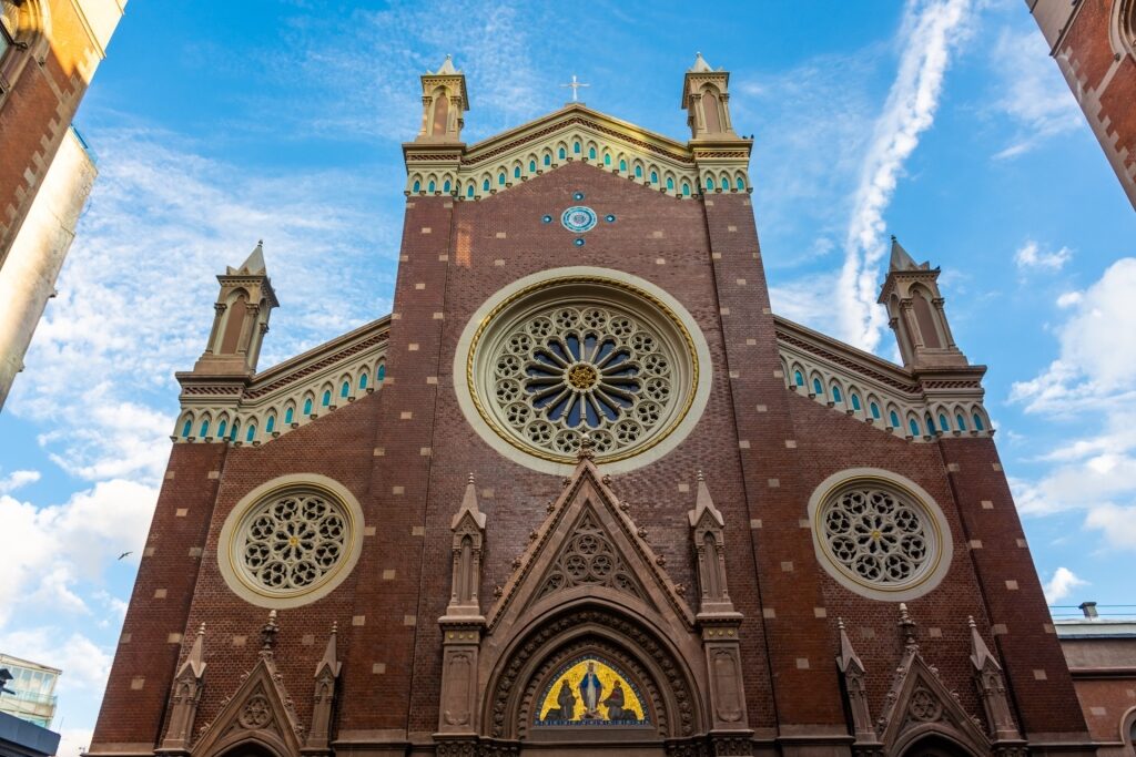 คุณจะพบว่าอยู่ครึ่งทางของถนน Istiklal อันพลุกพล่าน ซึ่งการตกแต่งภายในแบบโกธิกอันเงียบสงบอย่างเห็นได้ชัดนั้นตัดกันอย่างมากกับโลกภายนอก รูปปั้นศักดิ์สิทธิ์และกระเบื้องโมเสกที่น่าประทับใจหลายชิ้นเป็นจุดเด่นของการตกแต่งที่หรูหรานี้